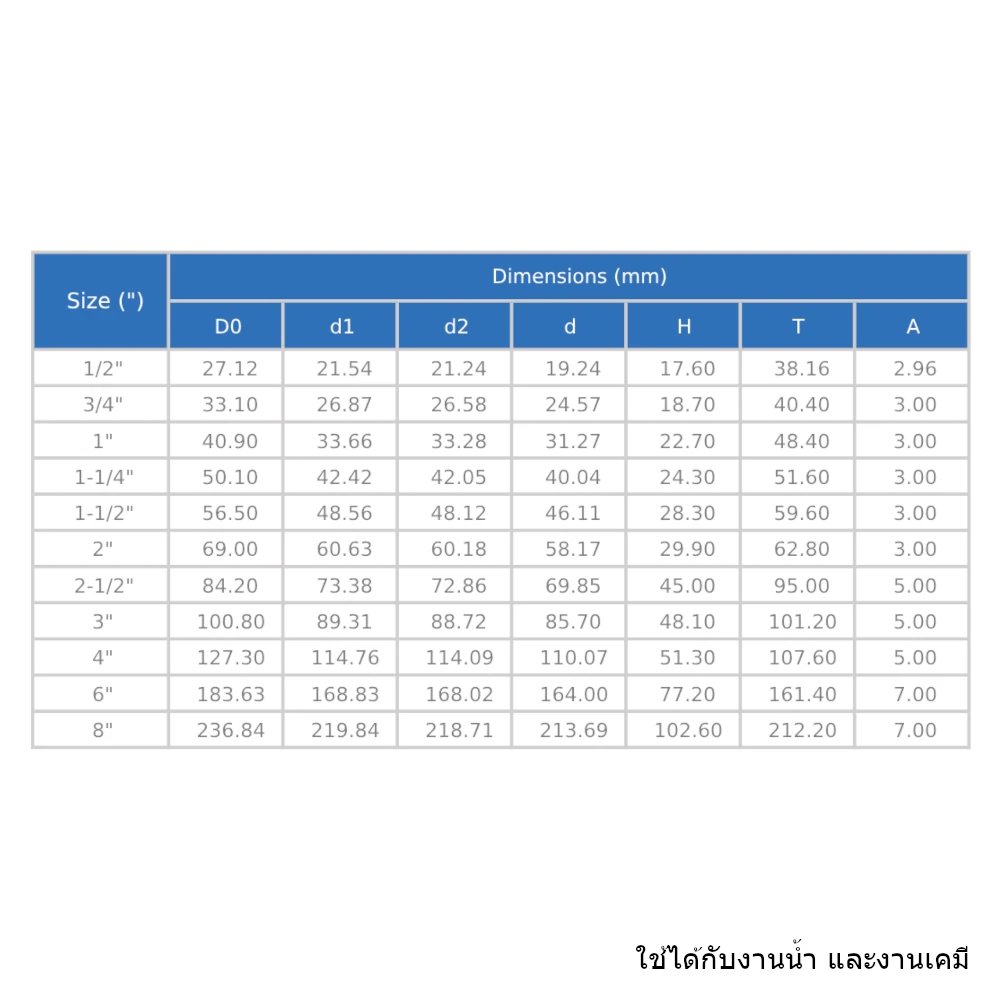 ขนาด : 1/2″- 2″